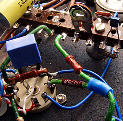 "Upchanie" licznych wyprowadzeń transformatorów to pierwsze poważne zadanie montażowe. Miejsca wcale nie jest zbyt wiele i nie obyło się bez znacznego skrócenia wyprowadzeń.