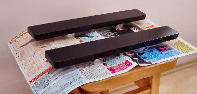 Panele boczne w przygotowaniu. Po kilku próbach zdecydowałem się zastosować wykończenie powierzchni lakierobejcą w kolorze "heban".