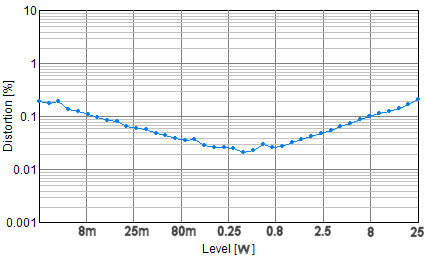 - <0.1% (P=1W sinus; f=20Hz÷10kHz)