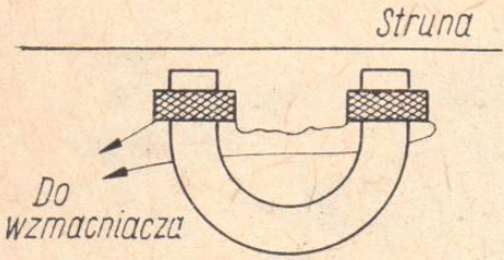 这种传感器由一个永磁体和两个线轴组成,两个线轴带有一个由细绝缘线制成的绕组,安装在其磁极附近。 整个东西直接放在乐器的钢弦下面。 在演奏过程中,运动中的琴弦会改变它与磁铁前部的距离。 反过来,这会导致系统中的磁通量发生变化并在绕组中感应出电动势。 换能器产生的电压最接近于弦的振动,因此也对应于它产生的声音。 然后,这些电压应该被适当地放大并通过扬声器再现。