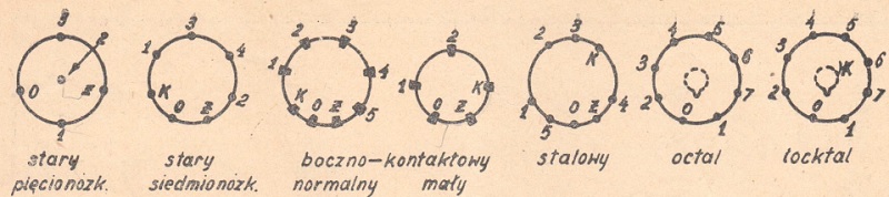 字母和数字位于每个基部的触点旁边。 熟悉其标记原理很重要,因为它解释了我们的测试人员的另一个属性,即最大的灵活性以及处理所有类型的真空管的能力。 每个系列的真空管通常在电极的排列中具有一定的均匀性。 例如,有些人总是在一个地方加热,另一些则具有阴极或金属化。 这些触点一劳永逸地建立,对于给定的插座和所有相关的电子管,都直接连接到电压源,众所周知,这些电源源是带有自变量字母的插座。 因此,在基本接触处,我们有字母o(发光和地面的启动),z(发光的末端,即我们与发光开关设置的电压),k(阴极) - 这些电极密不可分连接到 提到的系统。 另外,G(网格)连接到带盖的柔性电缆上,旨在用于所有真空管,除了一些旧的五足腿外,灯泡顶部的阳极。 对于这些真空管,提供了第二个用尖端终止并连接到(阳极电压)的柔性电缆。 我们将字母O,Z和K放置在标记插座的圆圈内,以表明它们是内部的永久连接。