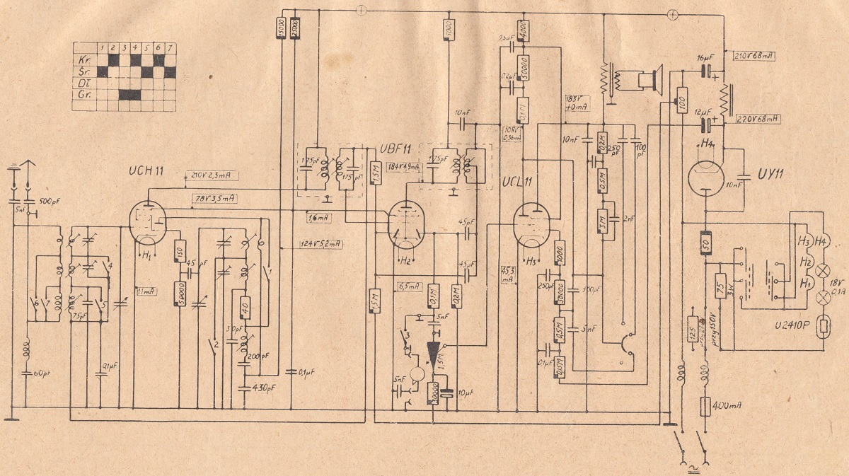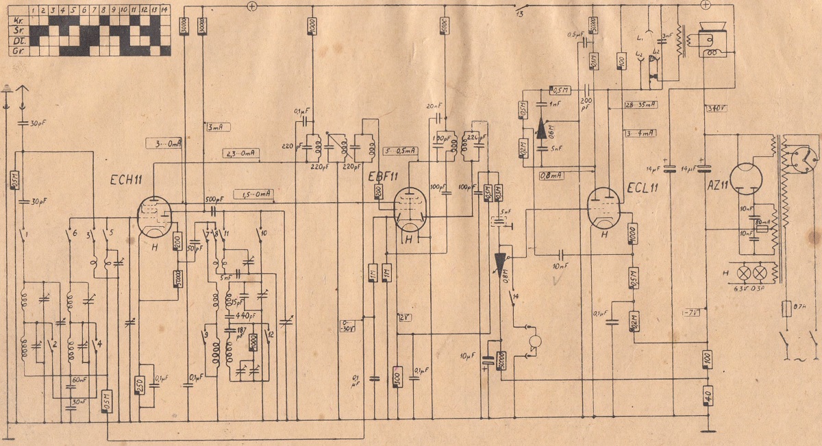 几乎所有基于真空管的测量仪器和精确的操作设备均由电源供电。 这些设备中的大多数,例如基于电子管的电压表,测量放大器和电流测量设备,都具有刻度尺,并且需要恒定的电压为阳极,灯丝和栅极电路供电。 - 回顾1940年至1944年间生产的无线电接收器的图表(24)