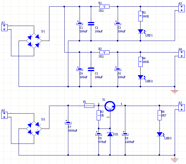 图 2 显示了放大器的电源示意图,包括用于两个通道的灯丝电源和两个阳极电压电源。