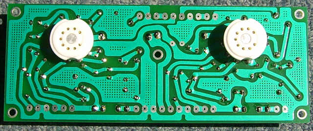 图 18 显示了包含一部分放大器的部分组装板的照片。 目前缺少未安装的 ARK 连接器。 如您所见,管座和相同的管子放置在印制板的铜面上。