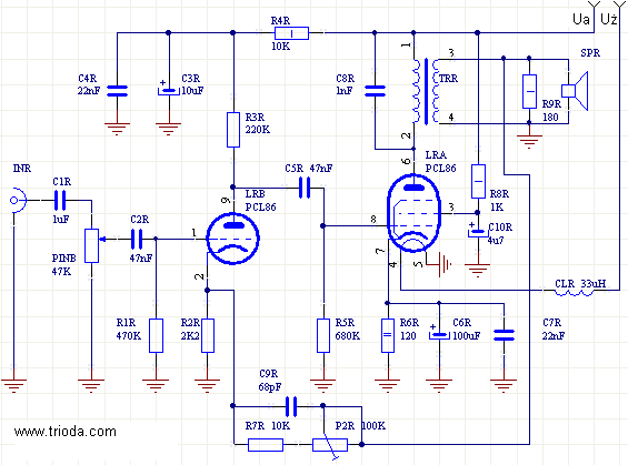 PCL86 电子管在音响设备制造商的赏识方面真是运气不佳。 造成这种不幸的主要原因是 ECL86 管 - 具有相似的特性,但适用于 6.3V 的灯丝电压。 多年来,它们一直是小型低频放大器中使用的基本电子管。 他们的“电视对应物”——PCL86电子管被简单地视为二等电子管,不适合用于音频放大器。